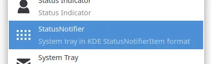 System Tray in KDE StatusNotifierItem format.
